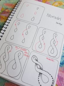 Pikoruairi is a tangle based on deconstructing a craving design used in Maori wood, pounamu and glass works – the Pikorua (although this twisted design is seen in other pacific and worldwide patterns and designs) however in Maori the design represents the strength of enduring friendship, loyalty and interwoven lives, much like the Zentangle community.