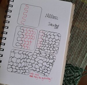 Always on the look out for the odd ‘background’ tangle, something to fill blank space, this is my newest addition to backgrounds! With a degree in textiles, you think I’d be fine with all things yarn, but no, although I can weave on my looms, knitting was always a completely different story, luckily my best pal is a brilliant knitter so she’s made me a few things in the past, when I just couldn’t weave them. However I am learning to crochet, this technique might be my saviour, so here’s to learning something new. Meantime try my tangle Nittinz for that background.