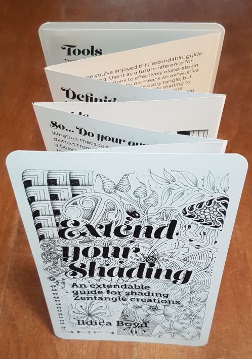 Designed, self published and printed in New Zealand this portable guide is a must for that time when you ask yourself – “How might I shade this tangle?”